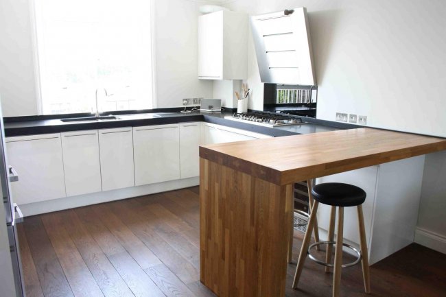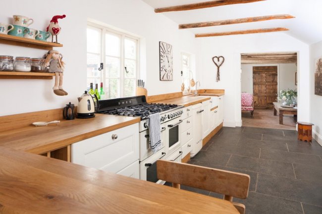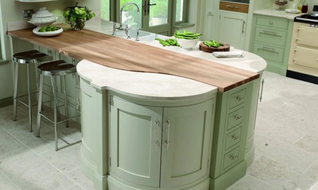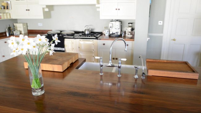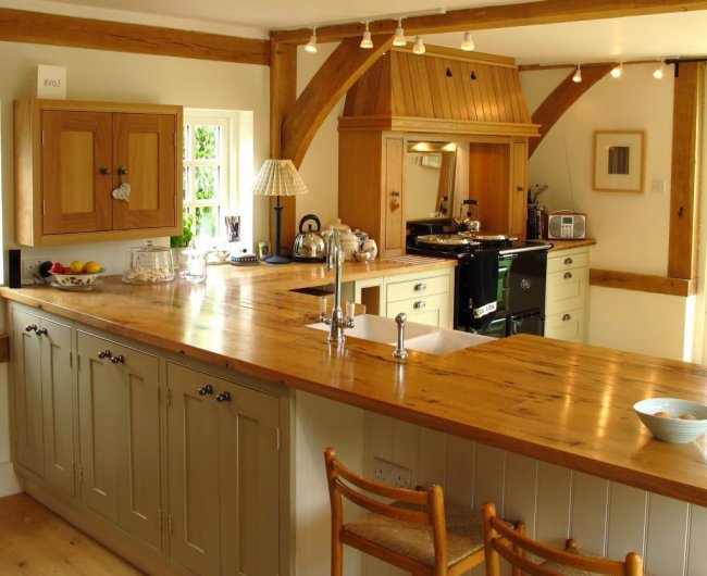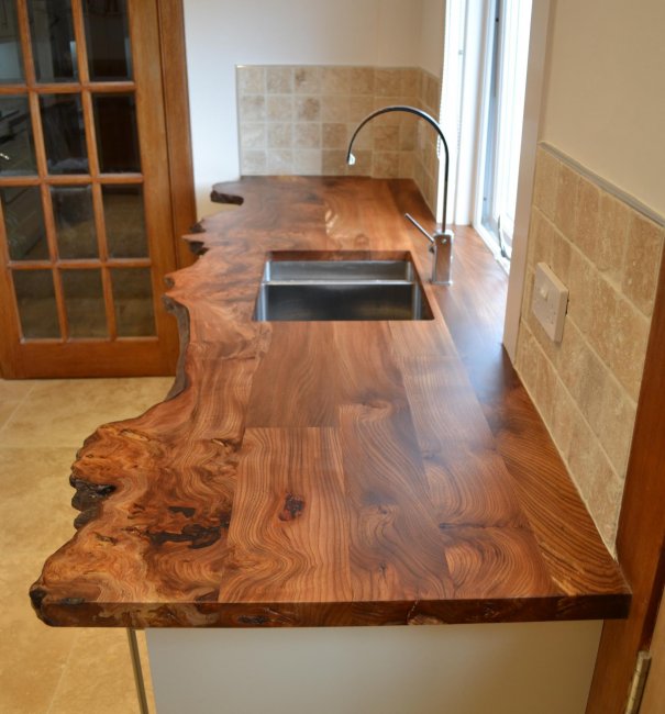 Такие поверхности выполнены из экологически чистого материала и создают особую атмосферу уюта на кухне. Однако они обладают невысокой устойчивостью к ряду моющих средств, а для сохранения устойчивости к влаге дерево необходимо периодически обрабатывать специальном воском, лаком, маслом.