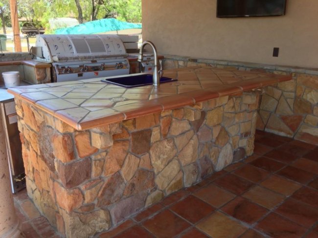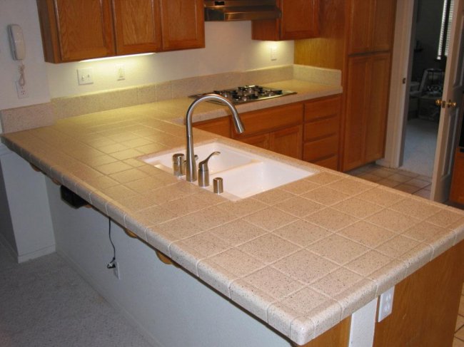 Она выкладывается на МДФ, ДСП или влагостойкий гипсокартон. Использование плитки позволяет создать оригинальный узор, а сама поверхность долговечна, устойчива к влаге, моющим средствам, механическим повреждениям. Но такие столешницы нуждаются в особом уходе, в частности регулярного затирания швов между плитками.