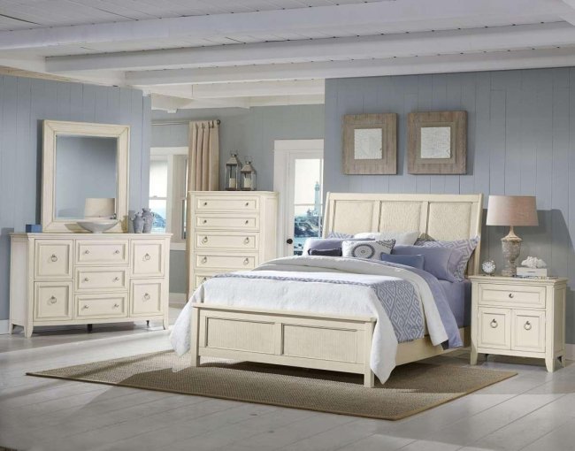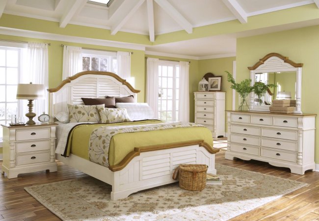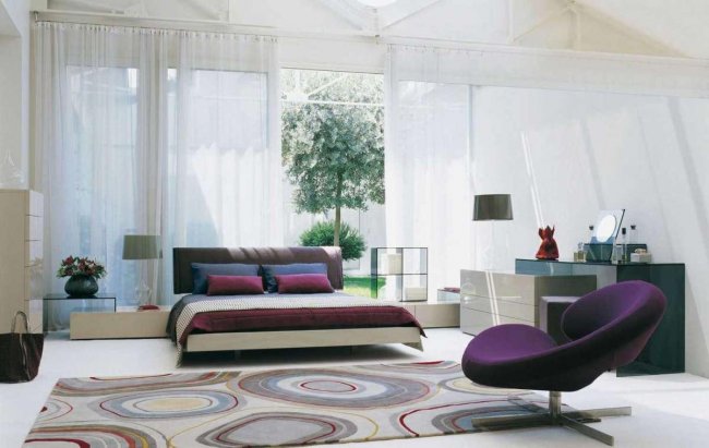 Так, спальня со светлой мебелью в интерьере удачно дополняется легкими и светлыми пастельными тонами обоев, штор или коврового покрытия.