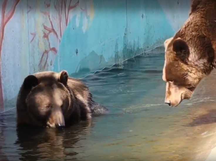 Медведи Ярославского зоопарка, Ума и Топа, начали водные процедуры. Несмотря на прохладную погоду, косолапые браться начали плескаться в бетонном бассейне, который установлен в вольере.