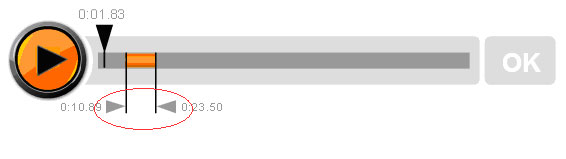 - после того, как вырезаемая часть трека отмечена стрелками, необходимо щелкнуть на вкладку «ОК»;